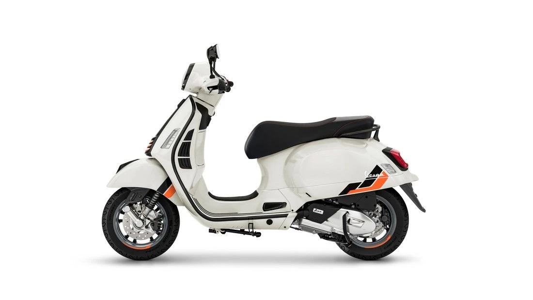diverses original Vespa-Zubehör möglich, wie z.B. Topcase in Fahrzeugfarbe, getöntes oder klares Windschild, Klappgepäckträger und vieles mehr.